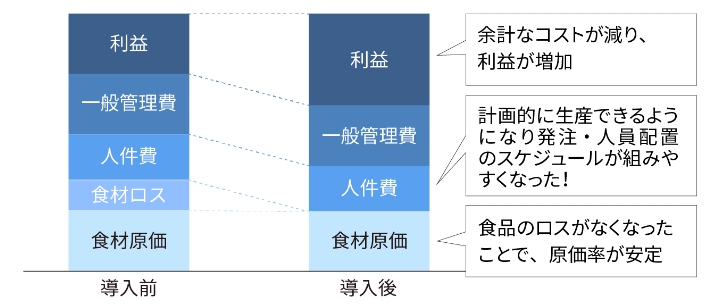 品質を変えず店舗を増やせ、まとめて製造すれば人件費や材料費の削減に。また店舗での作業が減るため労働環境の改善にもつながります。
