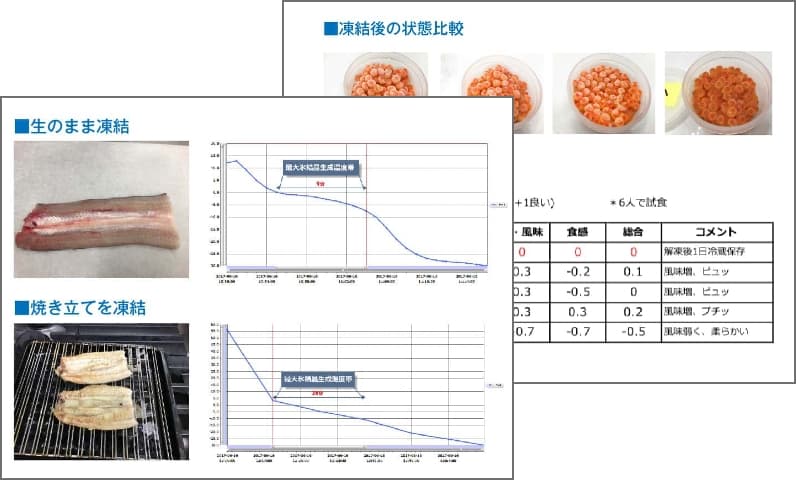 今まで不可能だった、同環境・同条件の元、各メーカーの急速冷凍機で一度に食品の凍結テストが、ここでしか分からない結果を手に入れることができます。